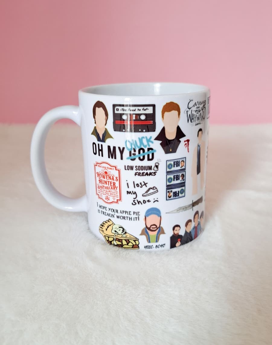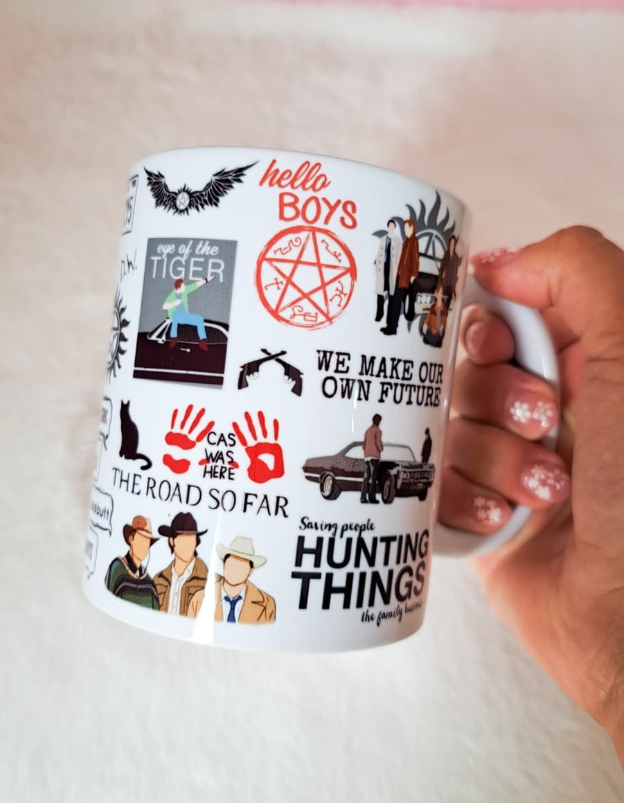 Inspirada no universo de Supernatural, esta caneca é perfeita para quem acompanhou cada caso, cada demônio e cada batalha ao lado dos irmãos Winchester. Com referências a Sam Winchester e Dean Winchester, é ideal para acompanhar seu café enquanto você relembra essa jornada cheia de ação, emoção e laços inquebráveis.