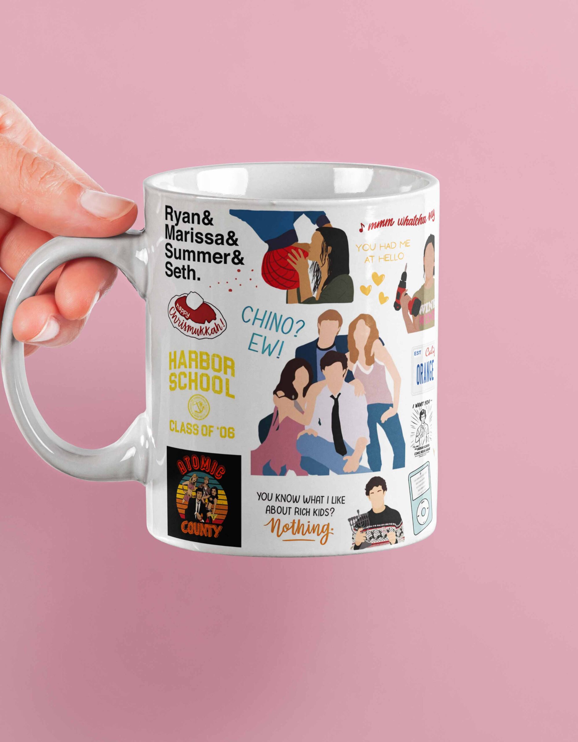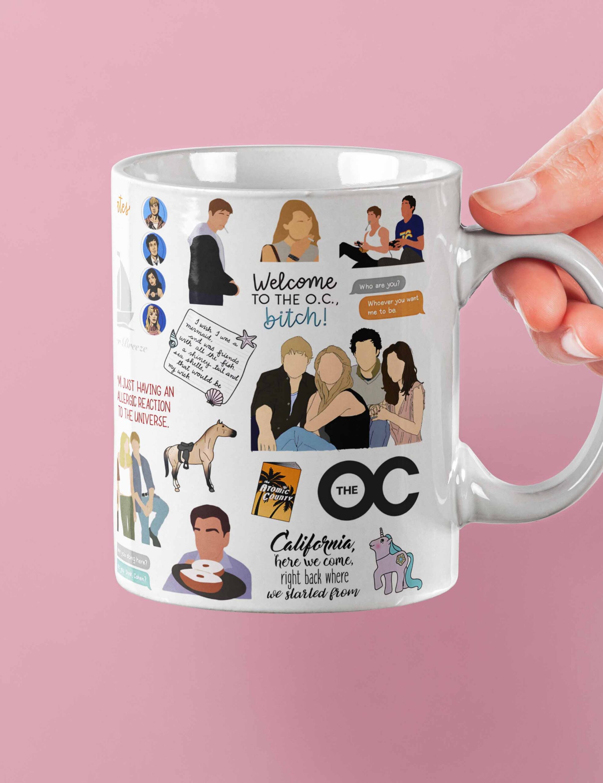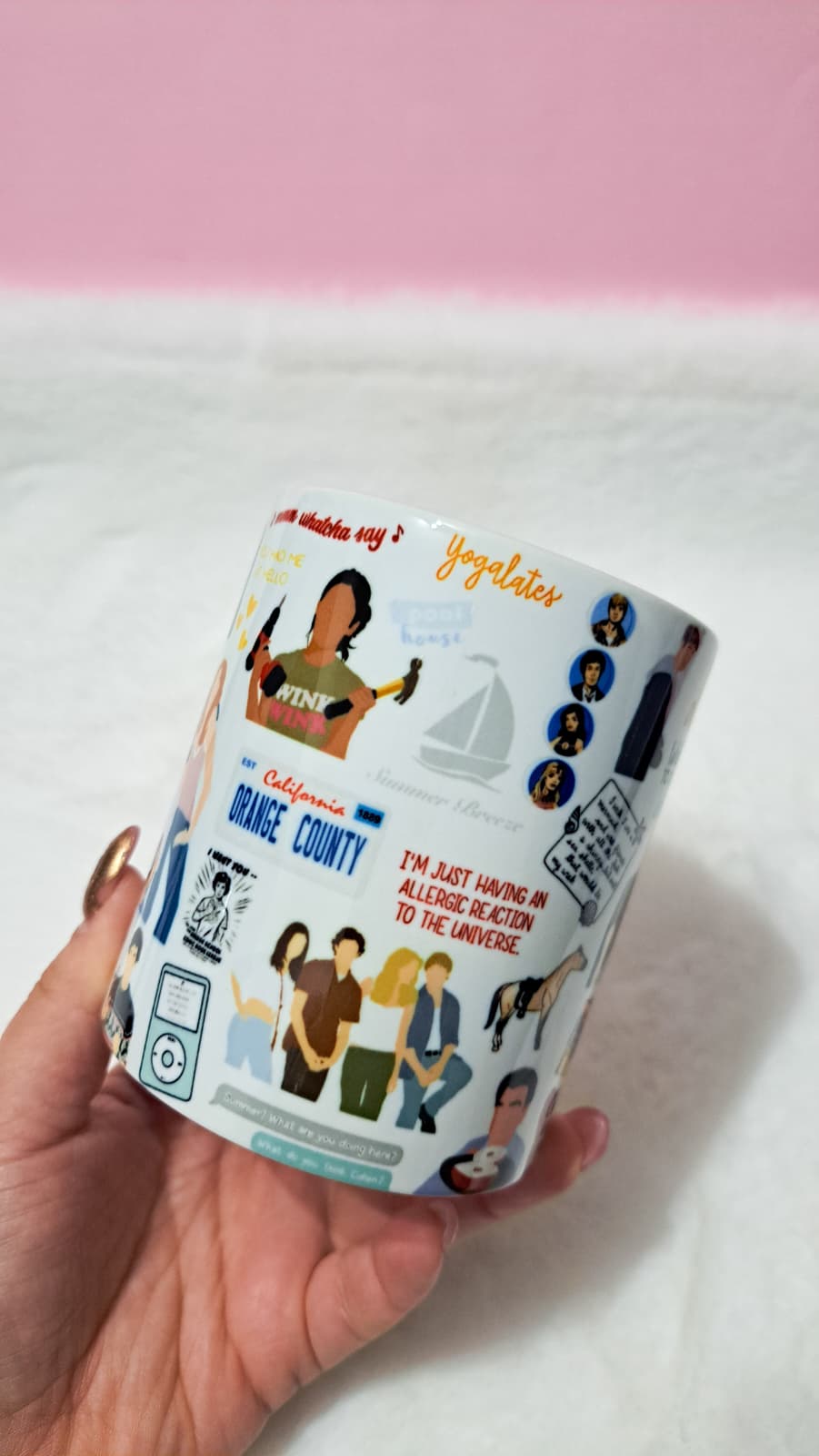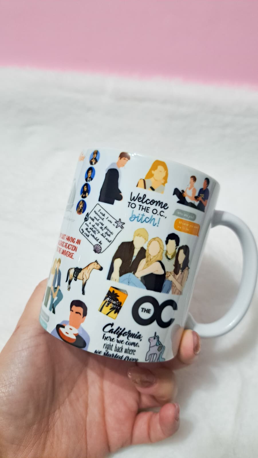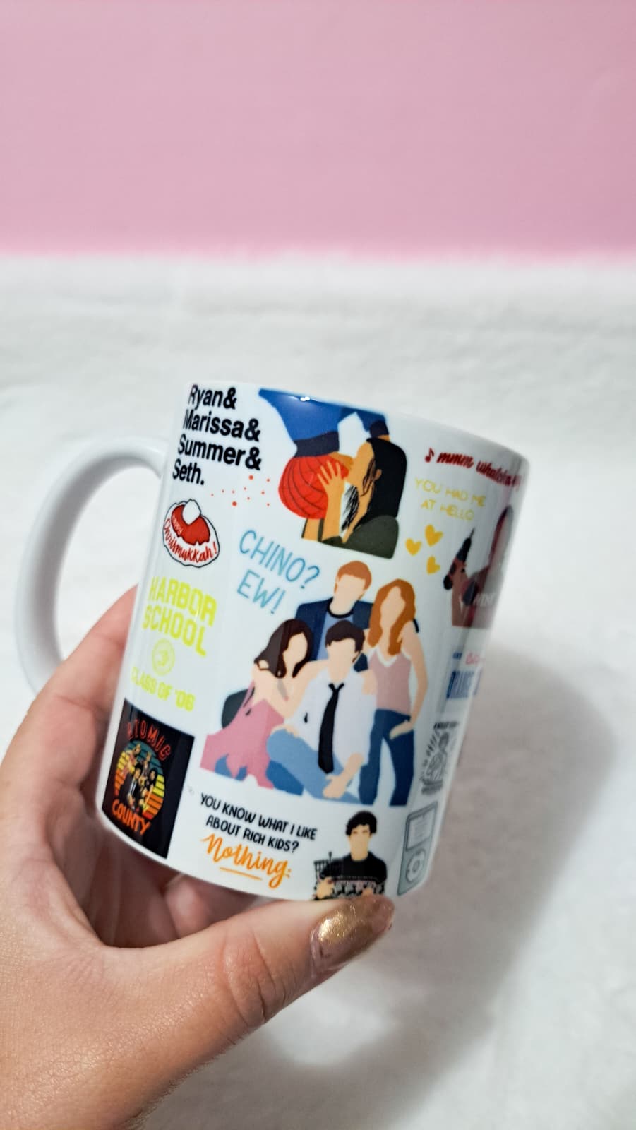 Inspirada no universo icônico de The O.C., esta caneca é perfeita para quem ama drama, romance e aquela vibe inesquecível da Califórnia. Com referências a personagens marcantes como Ryan Atwood, Seth Cohen, Marissa Cooper e Summer Roberts, ela é ideal para acompanhar seu café enquanto você relembra momentos que marcaram uma geração.
